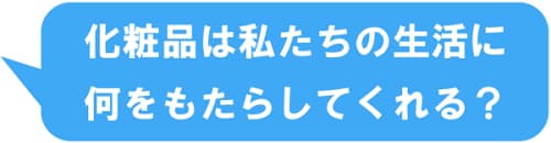 4月からオンライン授業が始まり、当初はパジャマのまま、ひげもそらずに、授業を受講することも多かった。しばらく経って、だらだらと日常の延長線で授業を聞き、身が入っていないことに気づく。服を着替え、ひげをそり、寝癖を整える。それだけなのに、気持ちがシャキッとして、さぁやるぞという気持ちで授業に臨める。たまのお出かけの日には前日から来ていく服を考え、いつもより長めのお風呂に入る。勝負の日にはいつもよりバッチリ決めていく。化粧品が私たちの生活にもたらすもの。もちろんTPOに応じての身だしなみや、他者・異性へのアピールなどの目的もあるが、やはり、さぁやるぞという気持ちを奮い立たせてくれたり、お出かけの気分を少し上げてくれる、勝負にあたって自信を与えてくれるなど、自分の気持ちを高めてくれる点が最も大きいと考える。化粧品は私たちに、自信と満足、日々の生活を闘う上でのエネルギーを提供してくれる。