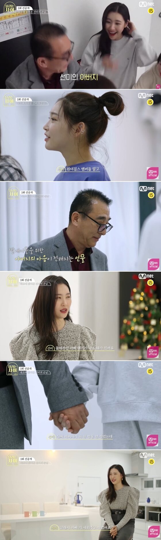 지난 23일 방송된 Mnet 예능프로그램 '달리는 사이' 에는 선미의 아버지가 멤버들의 숙소에 깜짝 방문하는 모습이 그려졌다.