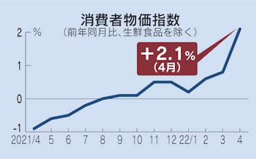 事前の市場予測の中央値(QUICK、2.1%)と同水準だった。これまで物価を押し下げる要因になっていた携帯電話の通信料下げの影響が薄まったことも上昇につながった。携帯大手各社は21年春に格安プランを導入していた。
