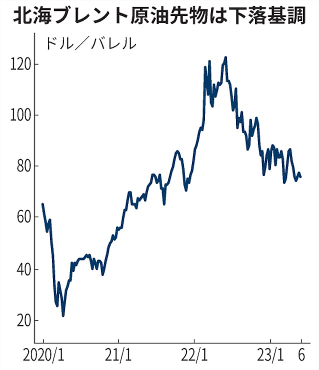 国際指標の北海ブレント原油先物は1バレル76ドル台と、世界景気減速への懸念から4月の高値より1割以上安い。サウジなどが自主減産を4月初めに表明した直後に急騰したが、その押し上げ効果が短期間で帳消しになった。