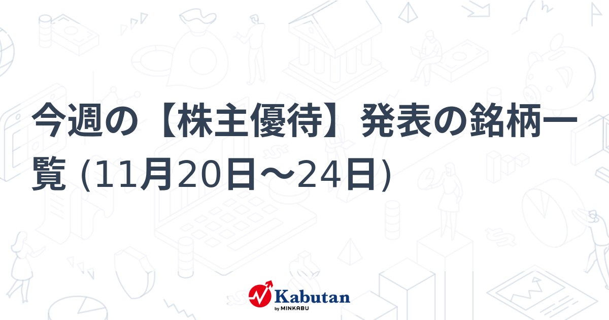 0 Response to "今週の【株主優待】発表の銘柄一覧 (11月20日~24日) - minkabu PRESS"